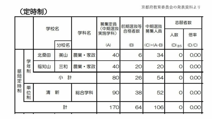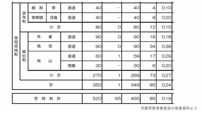 【各校の倍率を見る】定時制の各校 鳥羽、桃山など