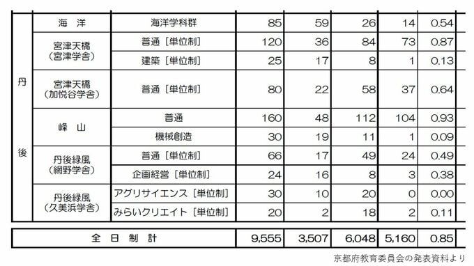 【各校の倍率を見る】海洋、宮津天橋、峰山、単語緑風