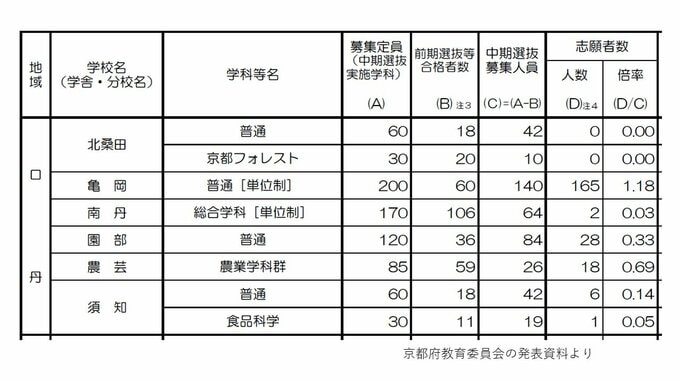 【各校の倍率を見る】北桑田、亀岡、南丹、園部、農芸、須知