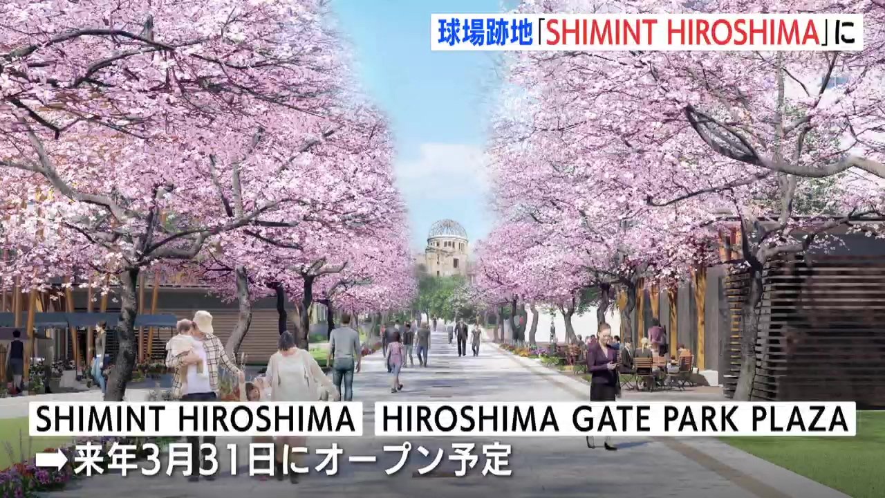 これは、整備を行う企業グループが発表したものです。決定した商業施設の名称「SHIMINT HIROSHIMA」は、市民とともに作り上げた、かつての市民球場のように、「市民とともに作り上げたい」という願いを込めて名付けられました。商業施設は、点在型の店舗が8棟配置され、物販や飲食などのテナントが入居する予定です。一方、球場跡地の中央イベント広場には、大小さまざまなイベントが開かれる「HIROSHIMA GATE PARK PLAZA」が整備されることになっています。 商業施設「SHIMINT HIROSHIMA」は、イベント広場「HIROSHIMA GATE PARK PLAZA」とともに、来年3月31日にオープンする予定です。