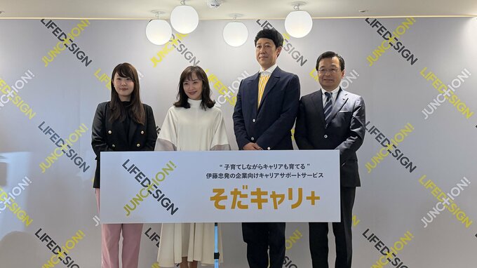 タレントの山口もえさん、お笑い芸人の小藪千豊さんが伊藤忠商事「そだキャリ+」ローンチ発表会に登壇しました。
