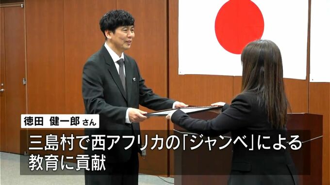 5日は三島村で西アフリカの打楽器「ジャンベ」による教育に貢献したジャンベ講師の徳田健一郎さんも表彰を受けました。