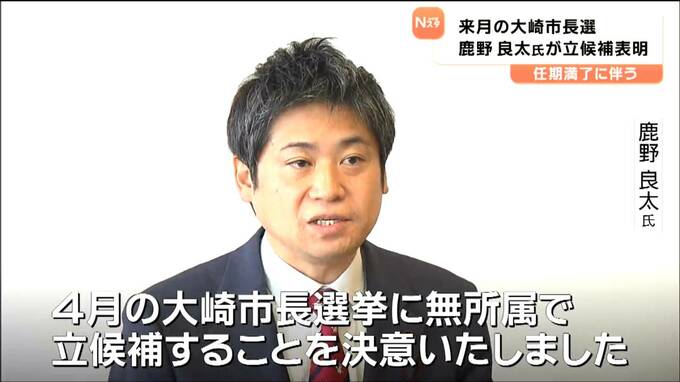 任期満了に伴い4月に行われる、宮城県大崎市長選挙に市議の鹿野良太氏が立候補することを表明しました。立候補の表明は2人目です。