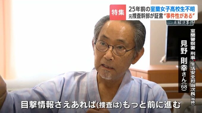 見野さんは最後に訴える。「いいですか、情報提供のお願いして。(当時)あの道を通った人が『うーん』と考えてくれればいい。そういう目撃情報さえあれば、(捜査は)前に進む。警察だけでは限界がある」