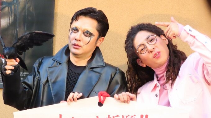 お笑いコンビ「たくろう」の赤木裕さん、きむらバンドさんが東京・烏森神社で行われた映画『ザ・クロウ』の大ヒット祈願イベントに応援隊長として登場しました。