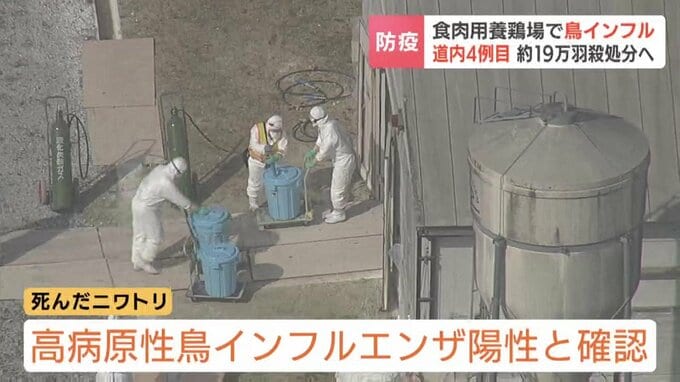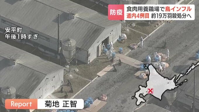北海道胆振の安平町の食肉用の養鶏場で高病原性鳥インフルエンザの感染が確認され、飼育されている約19万羽の殺処分が始まりました。