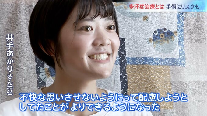 「多汗症で病院に受診した人は5%以下。受診までは行き着かない人も多いのかなと思う。本人にはコントロールできない状況がいかに大変かは、みんなに知ってもらった方がいい。それによって治療できる人はした方がいい」