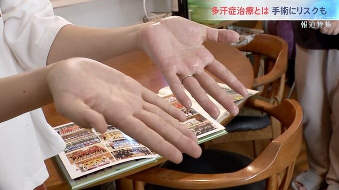 あかりさんは、代償性発汗のリスクを減らすため、手術は利き手の右手だけ行う。