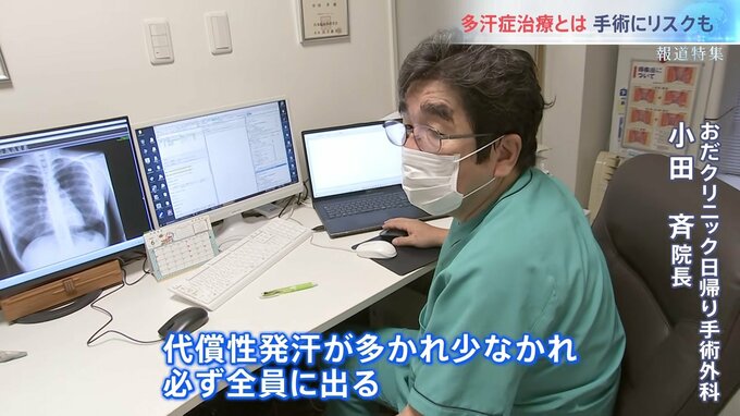 「代償性発汗が多かれ少なかれ必ず全員に出る。その中に、手術を後悔するほどの極端な汗、例えば女性だと夏の暑い日に外出しただけでブラウスがびっしょり濡れるとか。過剰な代償性発汗で手術を後悔する方が実際にいる」