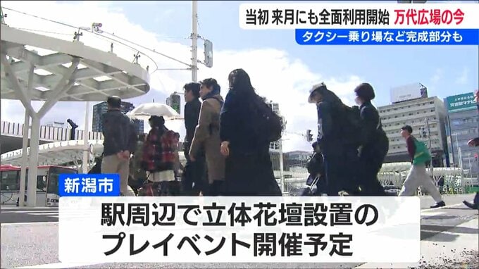 新潟市は駅周辺で立体花壇を設置するプレイベントを開催し、街の魅力を発信していく方針です。