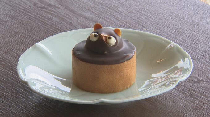 たぬきケーキは、チョコレートがコーティングされた、その名の通りたぬきの顔が象ってあるケーキ。
