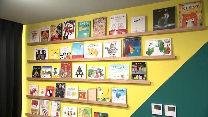 「劇場の名前にあるように、入口の本棚には絵本が並べられています」