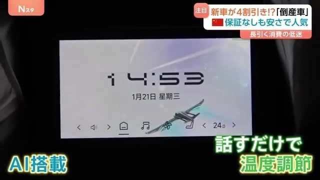 江蘇省の自動車販売会社の社長が紹介するのは、中国の新興自動車メーカーの車です。車にはAIが搭載されていて、話しかけただけで温度調節もしてくれる優れモノです。しかも、新車だということですが、気になる値段は…