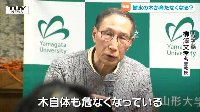 山形大学 柳澤文孝 名誉教授「気温上昇で樹氷がなくなることについては随分前から言っていること。樹氷の元となる木も気温上昇に伴って亜高山帯の条件を満たさなくなるので木自体も危なくなっている」