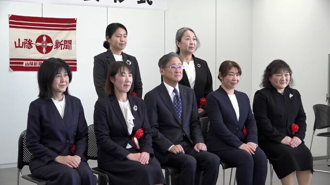 2025年度の優良保育士は岡山県と広島県から選ばれた7人です。乳幼児保育に携わり、功績が顕著な保育士を山陽新聞社会事業団が毎年表彰していて、今回で75回目になります。式では、桑原功理事長から受賞者に賞状と記念品が贈られました。
