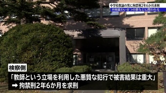 5日の裁判で検察側は「教師という立場を利用した悪質な犯行で、被害結果は重大」として、佐々木被告に拘禁刑2年6か月を求刑しました。