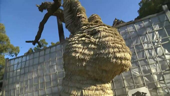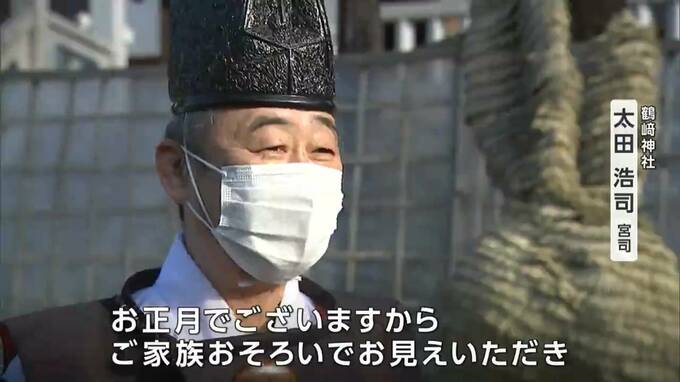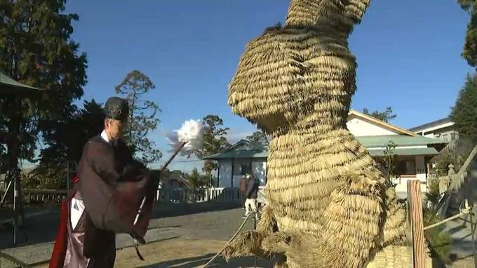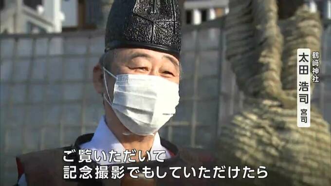 けさ、岡山県早島町の鶴崎神社に設置され、清めの儀式も行われました。干支飾りは参拝する人に楽しんでもらおうと宮司が毎年制作していて、今年は3週間かかったということです。