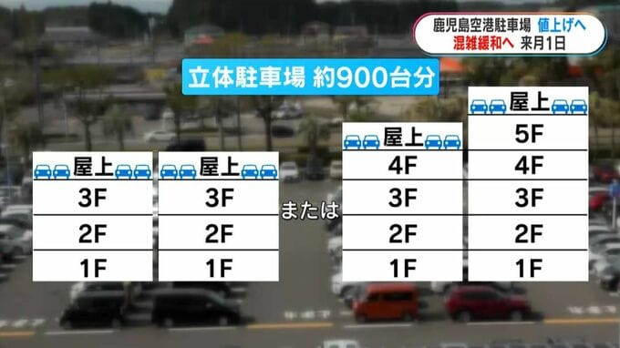 空港の敷地内に地上3階建て2棟、または地上4階建てと地上5階建てを1棟ずつの立体駐車場を建設することで、新たにおよそ900台分の駐車スペースを確保します。来年度中に整備、運営する事業者を公募します。