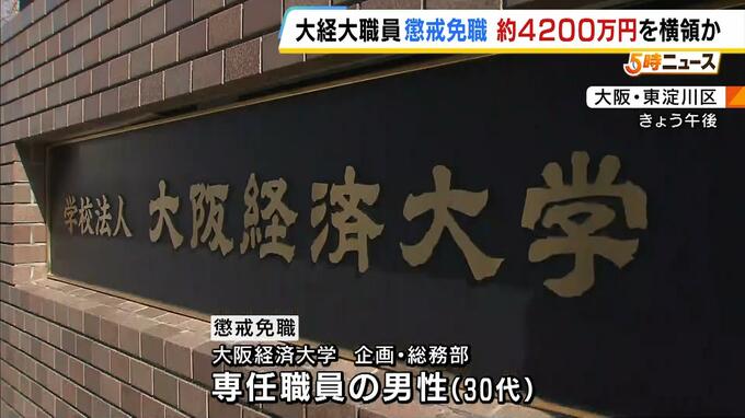 大阪経済大学の専任職員が、後援会などから約4200万円を横領したとして懲戒免職処分です。 3月4日付けで懲戒免職処分となったのは、大阪経済大学の企画・総務部の専任職員の男性(30代)です。 大学によ…