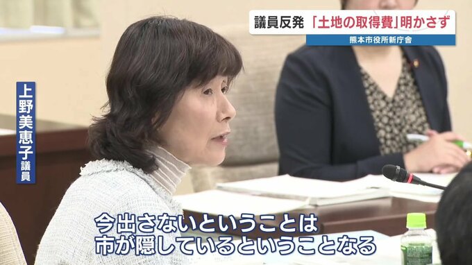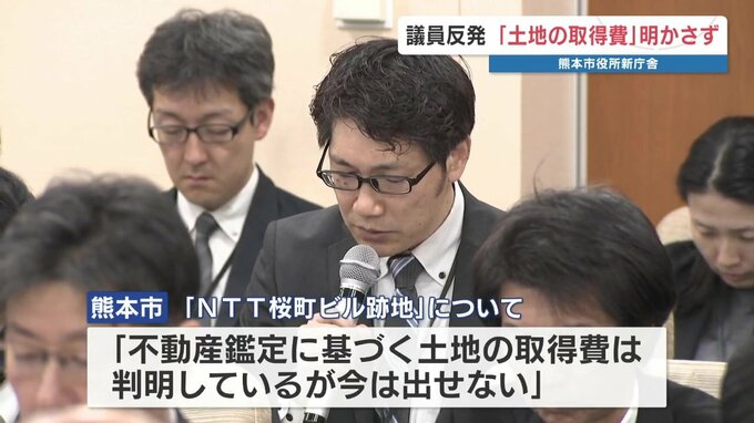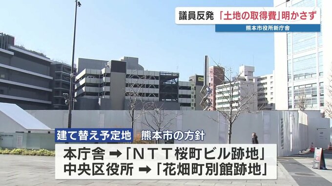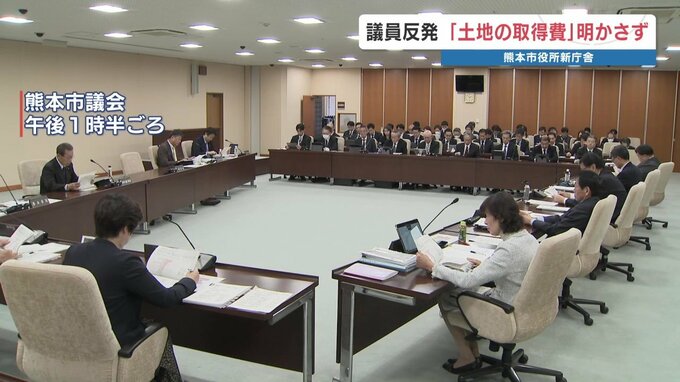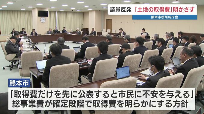 熊本市の新庁舎整備に関する特別委員会が開かれ、本庁舎建設予定地の取得費が示されず、議員が反発しました。