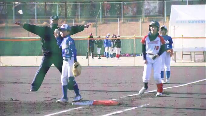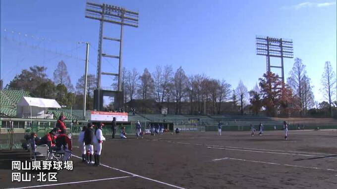 寒空の下、岡山県野球場で始まった、2022 渋野日向子杯第1回岡山県小学生ソフトボール大会です。ソフトボールをしていた渋野選手が小学生の頃に出場したことがある大会を復活させ、選手同士の交流を深めてほしいと、大会名を「渋野日向子杯」に改め、今年、初めて開かれました。