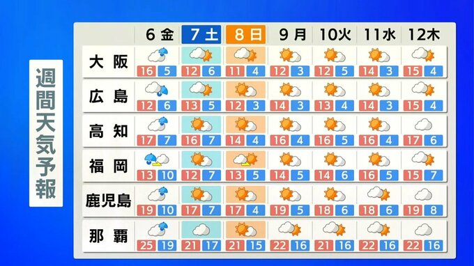 土曜日は山陰で雨か雪が降る所がありますが、そのほかの地域は日中晴れるでしょう。また、日曜日から水曜日は広い範囲で晴れる見込みです。