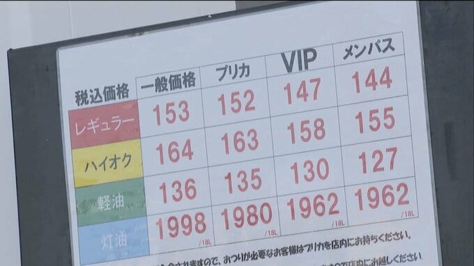 「こちらのガソリンスタンドでは、きょうはレギュラーガソリン1リットルあたり153円。先月末から据え置きです」