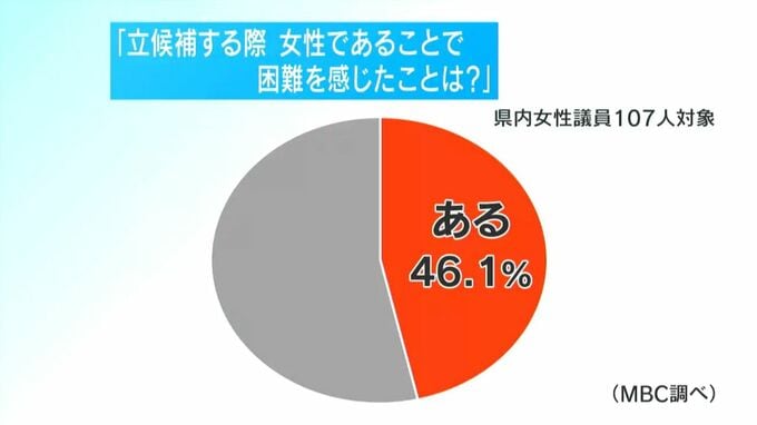 MBCが県内すべての女性議員107人を対象にアンケートしたところ、半数近くが、立候補の際「女性であることで困難を感じたことがある」と回答しました。