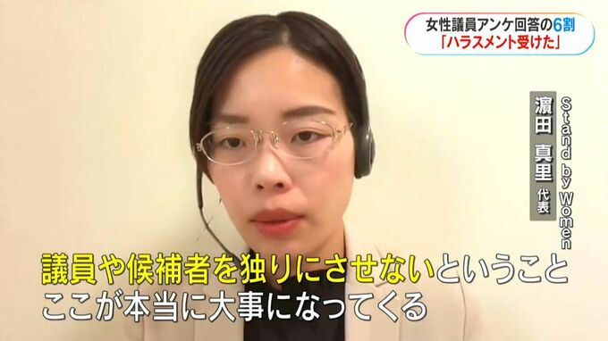 (Stand by Women 濵田真里代表)「こういうことがあると有権者が知って、自分が現場に居合わせたときに、何らかの形で介入したり、少し被害を受けている議員の味方に立って、複数人で間に入る」