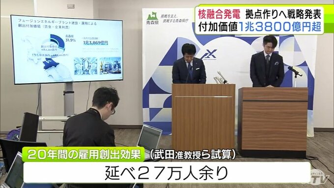 「私自身もこの取り組みに力を入れていきたい」青森県・宮下宗一郎 知事が核融合発電「フュージョンエネルギー」の国際的な拠点作りに向けた総合的な戦略発表 県内で生み出される付加価値は1兆3800億円超と試算 青森テレビ 2026年3月5日(木) 21:05 国内