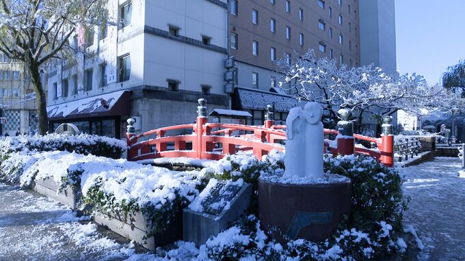 「高知市のはりまや橋も積もった雪が凍っています。油断すると足がつるっと滑ってしまうくらいです」