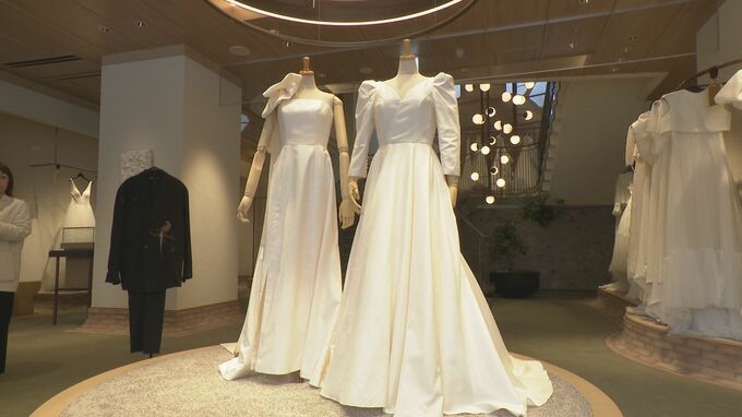 ドレスには2種類のデザインがあり、5日からことぶき金沢店で試着の予約を受け付けています。