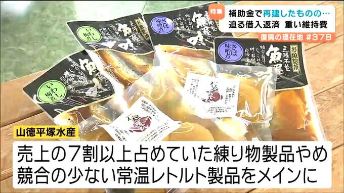 この会社もグループ補助金を活用していますが、水揚げ量や人手不足が回復する保証はないと考え、再建のタイミングで従業員数や設備を縮小。売上の7割以上を占めていた主力の練り物製品をやめ、おでんや総菜など競合の少ない常温のレトルト製品をメインにしました。
