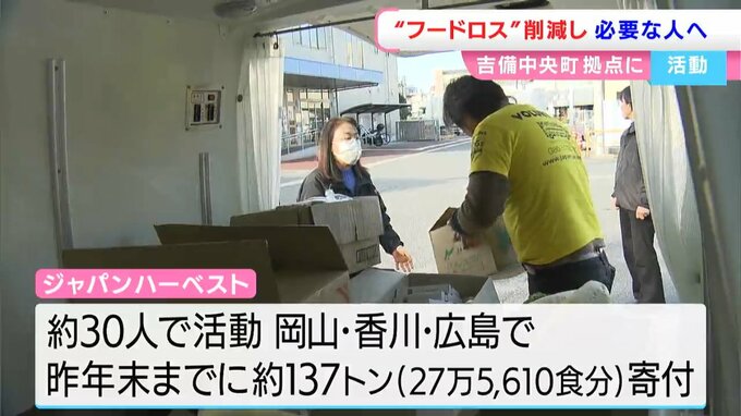 岡山・香川・広島の3県で、昨年末までに約137トン、27万5,610食分の食品を寄付してきました。