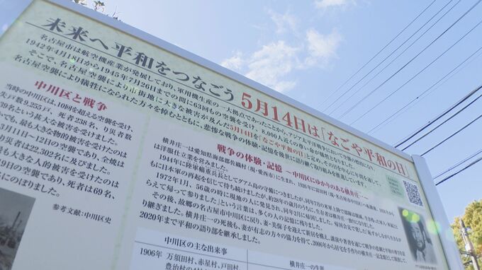 約8000人が犠牲になった名古屋空襲の記憶を風化させないため、横井庄一さんの足跡も交えた平和の銘板が、中川区に設置されました。