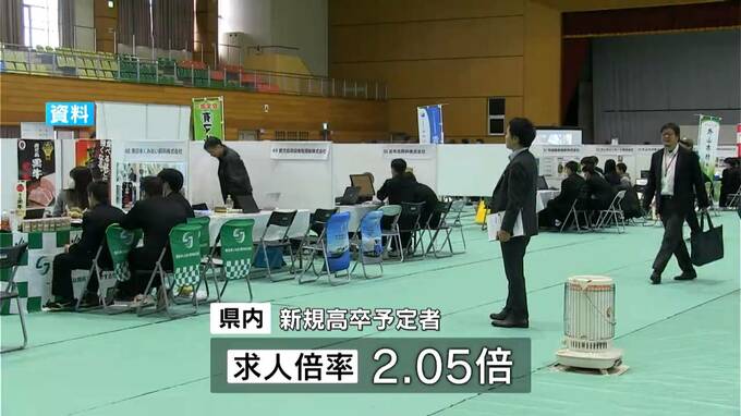 一方、求職者1人に対して何件の求人があるかを示す求人倍率は県内の高校卒業予定者で2.05倍と、人手不足などを背景に高い水準が続いています。