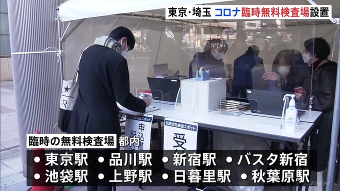 帰省や旅行が増える年末年始に備え、東京都と埼玉県はきょう、主要な駅に臨時の新型コロナの無料検査場を設置しました。東京都はきょう、帰省や旅行などで人の移動が増える年末年始に備え、東京駅や日暮里駅など都…