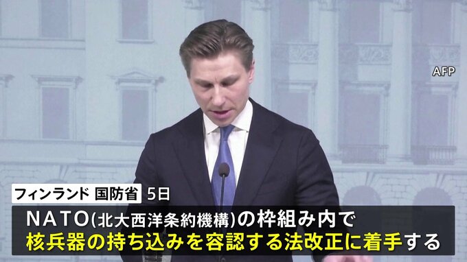 北欧フィンランドは、隣国ロシアによる長期的な脅威を見据え、核兵器の持ち込みを容認する法改正に着手すると発表しました。NATO=北大西洋条約機構の加盟国、フィンランドの国防省は5日、NATOの枠組みの中で、核…