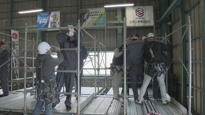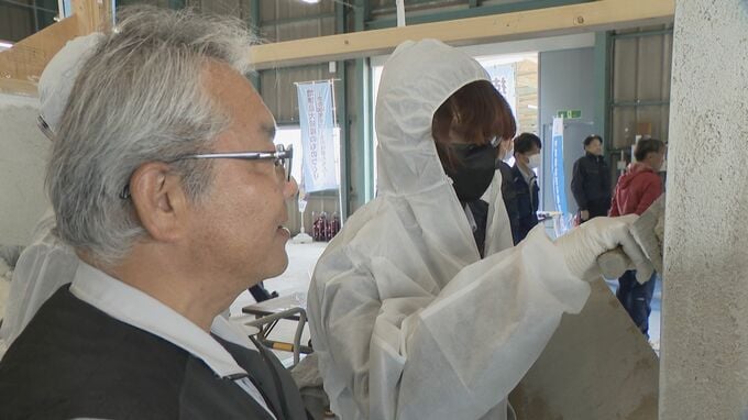会場では、一宮工科高校と愛西工科高校の生徒約50人が、職人の指導を受けながら足場の組み立てや壁塗りなど、一連の作業に挑戦。プロの技を肌で感じました。