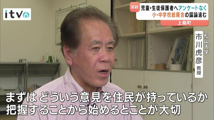 「(上島町の場合)町主導で統廃合ということになると、やはり廃止される側の住民としては非常に受け入れがたい、抵抗感のある政策だと思います」