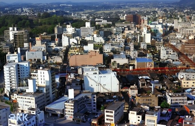 明治に入ると、新市街一帯は西南戦争の激戦地となり、鷹匠町も焦土と化しました。その後1883年(明治16年)に、高木第四郎氏(後の帝国牛乳協会会長、九州新聞社社長)が、ここに乳牛5頭を飼う160坪の牧場を作ったそうです。空襲で再び焦土となるも、熊本を代表する繁華街として復興した現在の旧鷹匠町付近の様子からは、ここで鷹が舞ったり、牛が草を喰んでいたりしたことなど、全く想像できません。