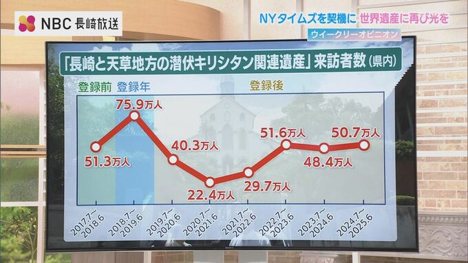 長崎県文化観光国際部インバウンド推進課・小宮健志課長(参事監)「2018年に(潜伏キリシタン遺産が)世界遺産登録されて以降、やはり2019年2020年とお客様は多くお見えになりましたけども、近年では少し減少傾向にあるということですので、2028年の10周年に向けてまた機運を醸成して盛り上げていきたいと思っております」