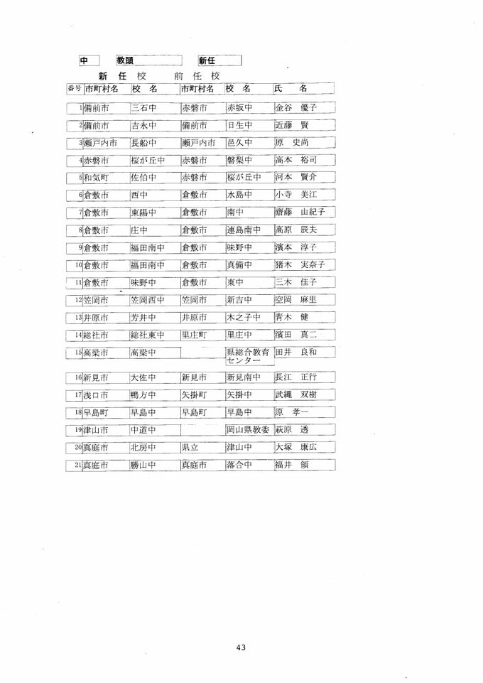 岡山県 教職員人事異動2026「あの先生は、どこへ?」(岡山市以外)【中学校・名簿一覧掲載・検索/令和8年度】 RSK山陽放送 2026年3月26日(木) 09:07 国内 名簿続き 名簿一覧画像 【小学校】 【中学校】 【高校/義務】