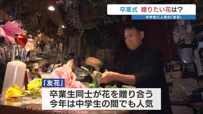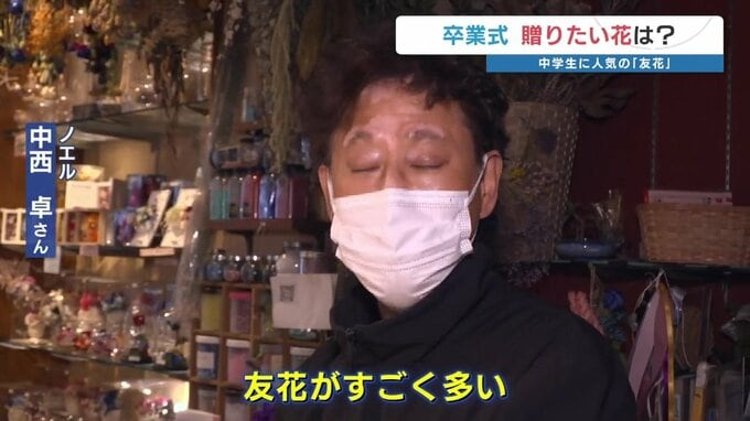 ノエル 中西卓さん「友花(ともばな)がすごく多い。中学生がお友だちに贈りたい、先輩に贈りたいという注文が多く入っているのは今年の傾向かなと。花を贈る層が若返っている感じがする」