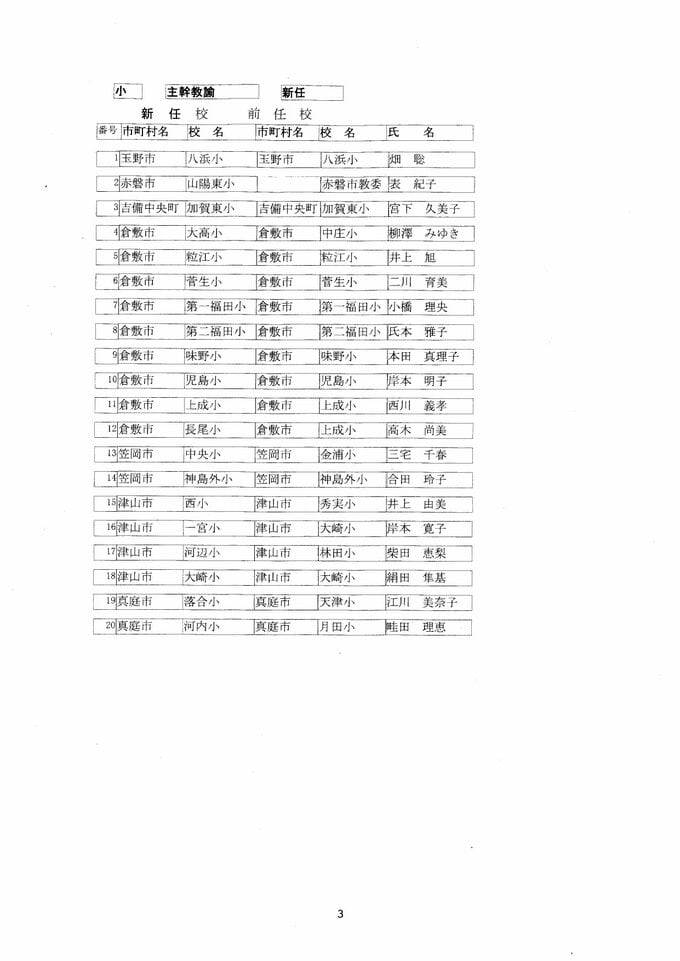 岡山県 教職員人事異動2026「あの先生は、どこへ?」(岡山市以外)【小学校・名簿一覧掲載・検索/令和8年度】 RSK山陽放送 2026年3月26日(木) 09:08 国内 名簿続き 名簿一覧画像 【小学校】 【中学校】 【高校/義務】