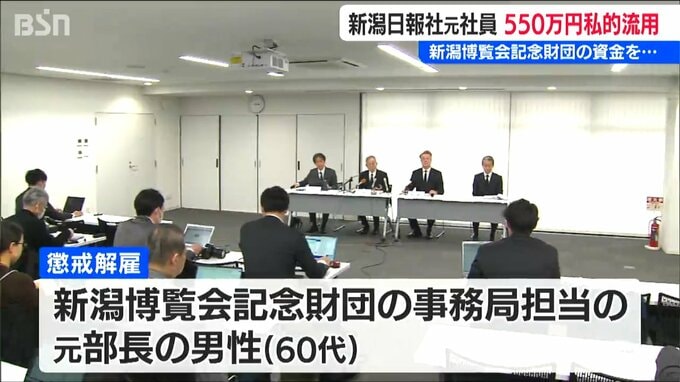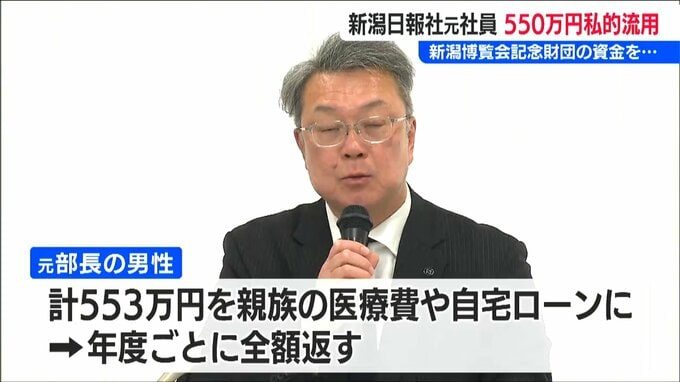 新潟博覧会記念財団は県と新潟市、新潟商工会議所と新潟日報社で構成される財団で、新潟日報社によりますと、元部長の男性はこの財団の資金を2022年度と2023年度で30回以上に渡り不正に引き出していたということです。