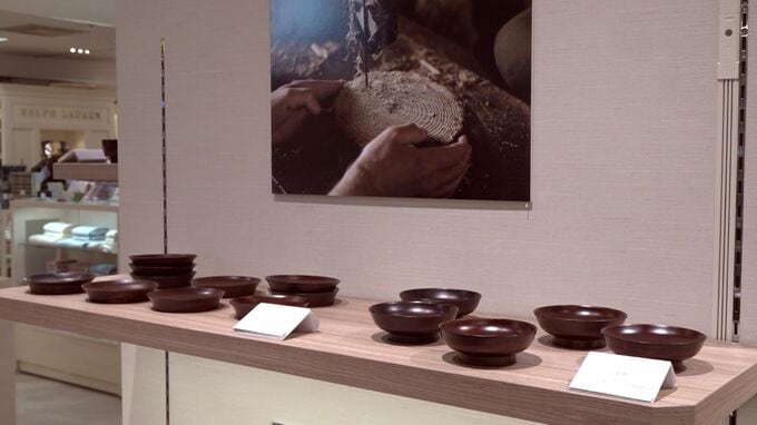 天満屋岡山店の5階にある美術画廊の前にできた、「アートスペース」です。きょう(6日)から、岡山県真庭市の蒜山地域に伝わる郷原漆器の展覧会が始まりました。