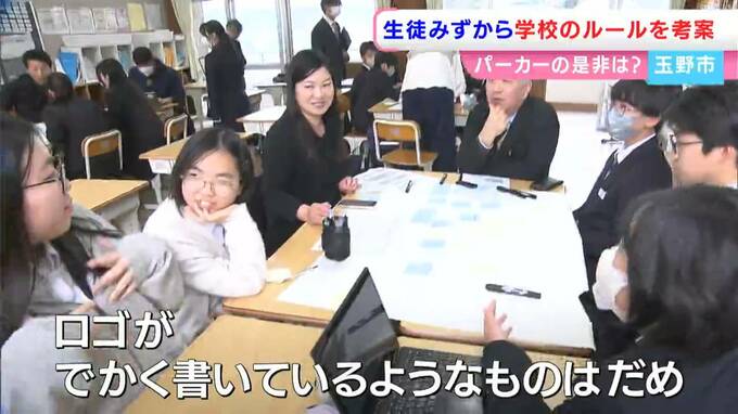 きょうは、これまで生徒だけでは意見がまとまらなかったというパーカーの着用の是非やマフラーや手袋の着脱のルールについて、世代を超えて、話し合われました。