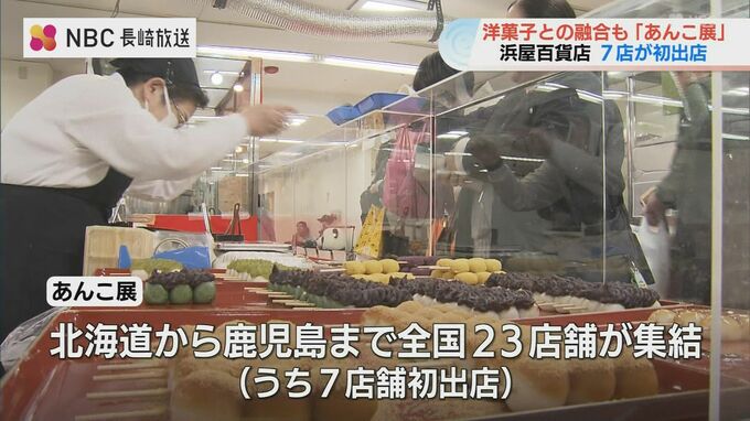 長崎市の浜屋百貨店で「あんこ展」 初出店7店舗、売り切れ続出も 長崎放送 2026年3月6日(金) 19:39 国内 7店舗が初出店!絶品あんこスイーツがずらり 全国から23店舗が出店している「あんこ展」。このうち7店舗が初出店です。 焼きたての生地にクリームといちご、あんが入ったどら焼きや、枝豆の餡で包んだ宮城の「ずんだ餅」などが並びます。