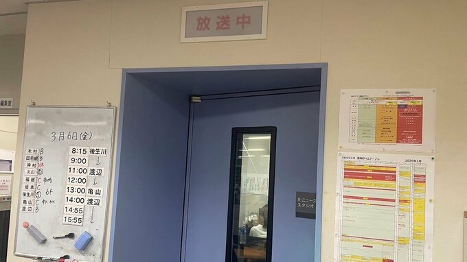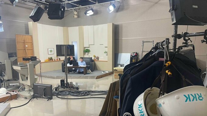 この日はテレビニュースのスタジオの隅だった。